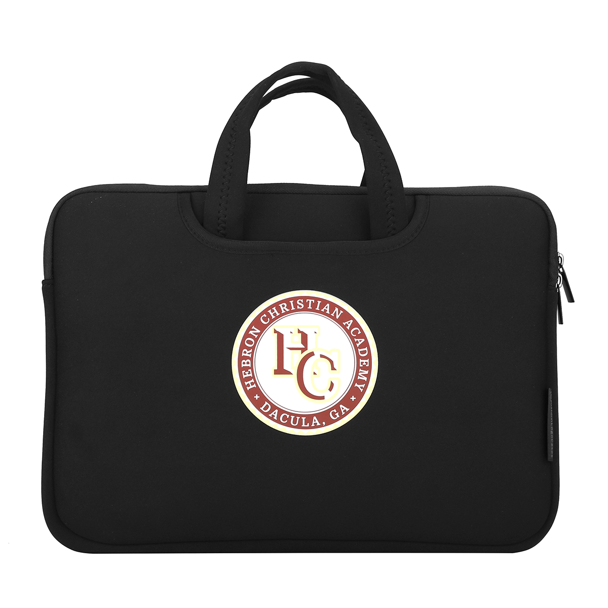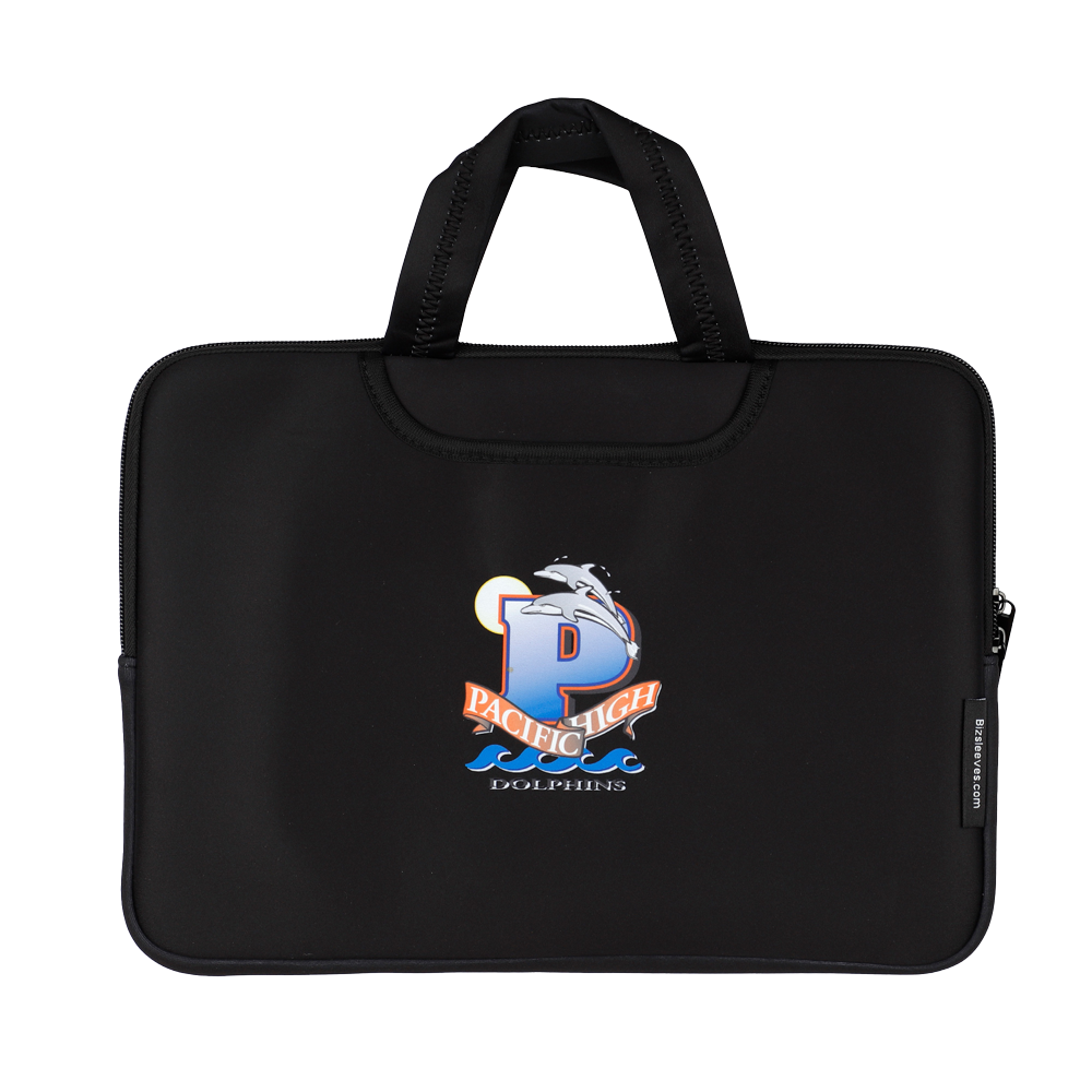 Thes custom laptop sleeves come with a handle for ease of use and portability. In addition to just having a handle, we have styles with shoulder straps. While some groups use our custom laptop sleeves to make it easier to transport a laptop in a bag or a backpack–and that’s a fantastic benefit of protection–having a handle or a shoulder strap makes it so you don’t need the bag–the custom laptop sleeve becomes your bag.